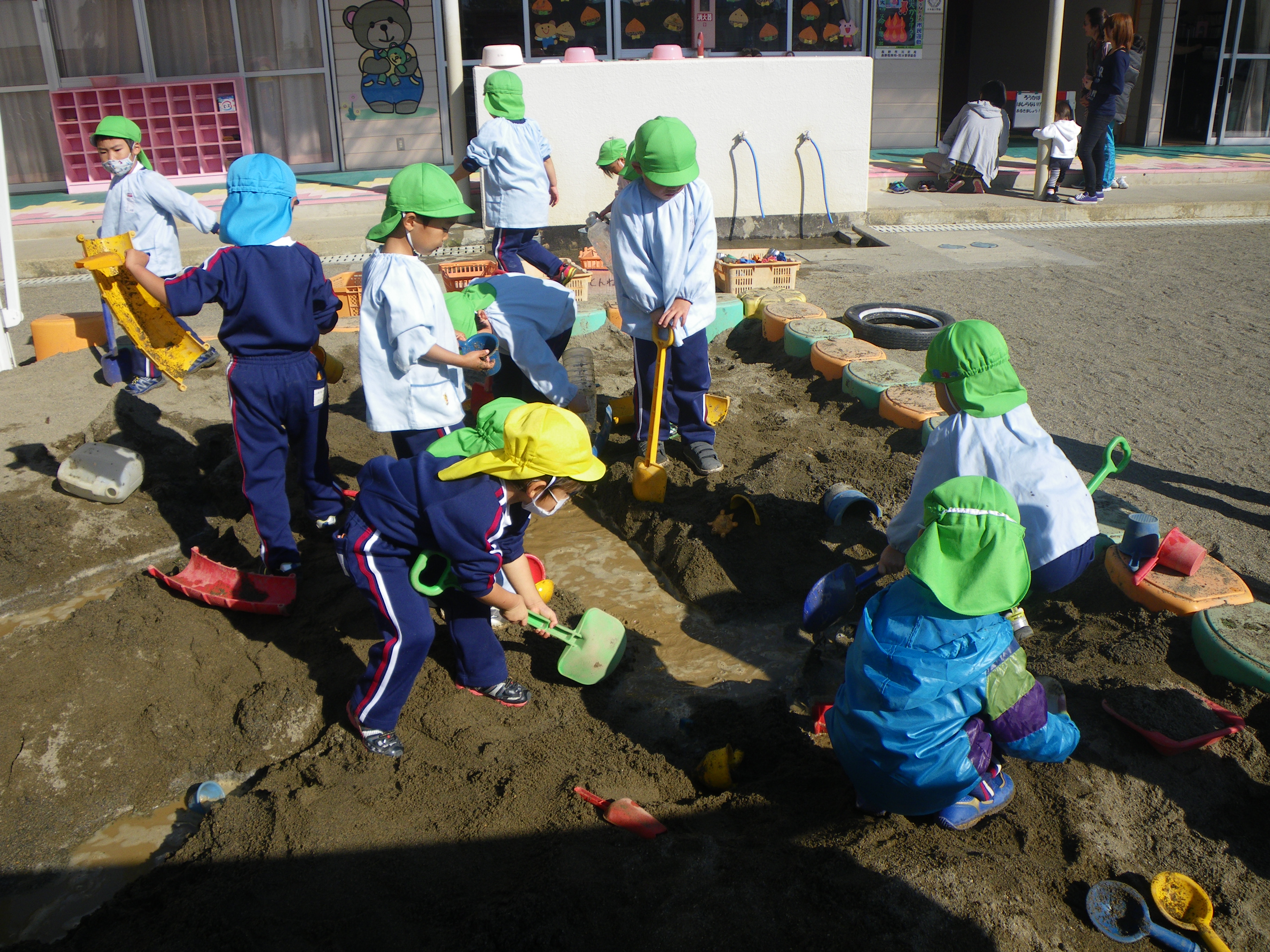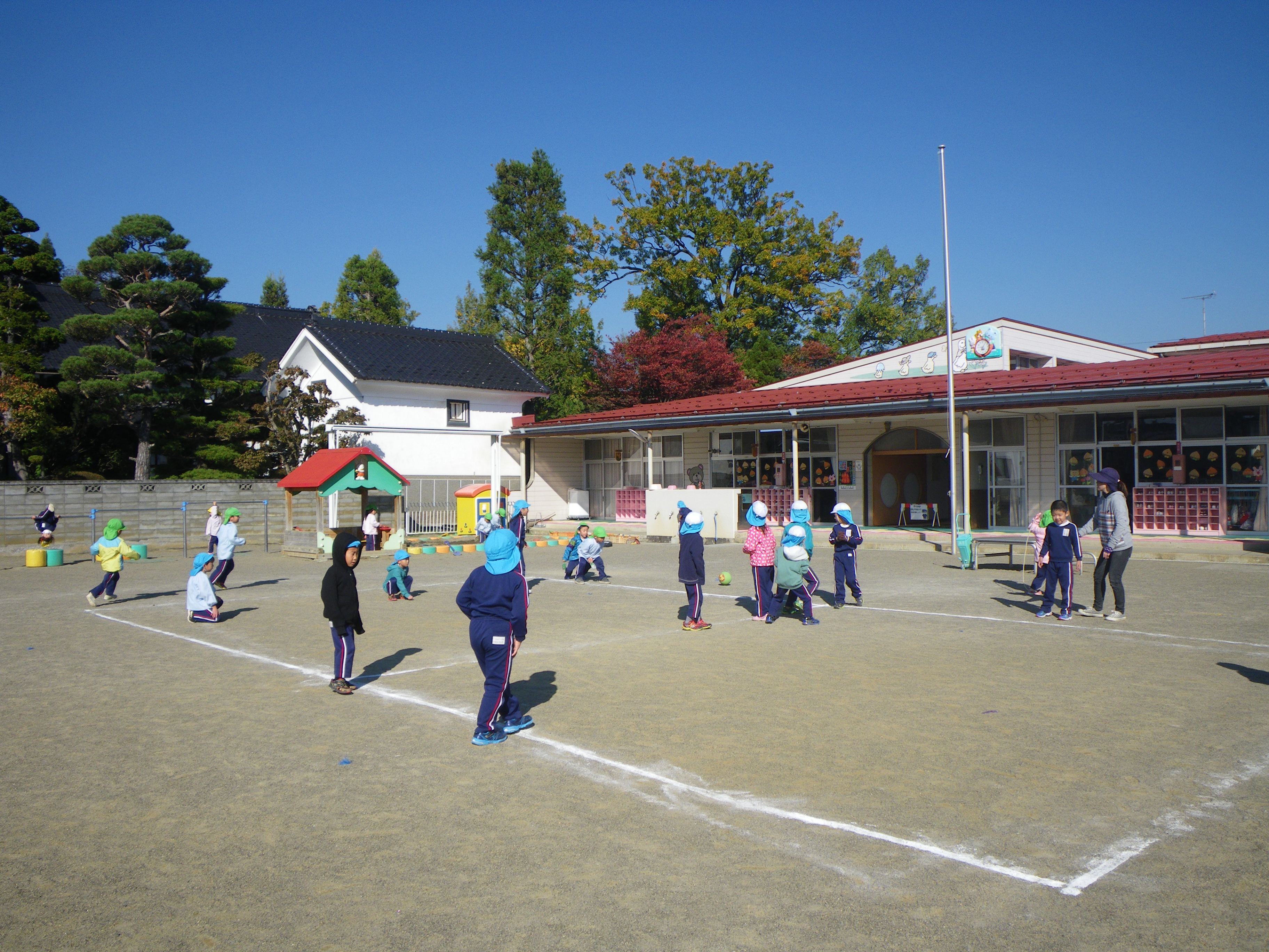 りんご畑と水田に囲まれ、お寺に隣接し、豊かな自然の中で情緒的、宗教的な雰囲気が漂っています。広い園庭には、伸び伸びと遊べる遊具、砂場、浄化槽付きのプールを備え、施設を充実させています。こうした恵まれた環境の中で、常に子ども達に温かな心で接し、感謝の気持ちや人への思いやりの心を育む、等も教育方針の中に取り入れ、様々な体験を通して明るく、伸び伸びと心豊かなたくましい子どもの育成に努めております。
