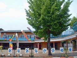木の温もりがいっぱいの園舎は平成14年に改築されました。田畑も残る住宅地の中、周囲には緑の豊かな広い公園がいくつもあり、恵まれた環境の中で子どもたちは活気に満ち、伸び伸びとした生活を送っています。