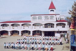 赤い三角屋根が目印のおとぎの国のお城のような園舎は、一部3階建ての園舎となっています。本園は、雄大な浅間山の裾野に位置し、遠くは八ヶ岳、槍穂高連峰を一望できる空気のおいしい幼稚園です。