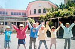 を目標に、自然とかかわり豊かな感動体験を積み重ねることが出来るよう、身近な小動物(山羊、犬、兎、アヒル、鶏等)とのふれあいが園生活の中でごく普通に行われ、教師と一緒に餌くれや掃除の世話をしている。又、リンゴ畑の中にある“リンゴの森の家"'を中心に(竹の子彩り、梅ジュース、リンゴの花摘み、イチゴ狩り、ジャガイモの種蒔き等)労働と収穫の喜びを味わっている。又、縦割保育(講座)では異年令の子が一番興味がありやりたい事を少し専門的に、クラス以外の先生や友だちと意欲的に過している。(サッカー、お料理、造形、木工、一輪車、散歩、ハロー、チャレンジ、バレエ等)