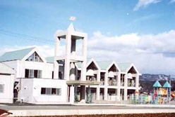 八ヶ岳の山並みをイメージした本園は、2003年4月、周囲を緑に囲まれた佐久市(旧臼田町)湯原の田園地帯に開園しました。塔の上では"星の町・臼田"を象徴する星の子風見鶏が、毎日園児を迎えています。